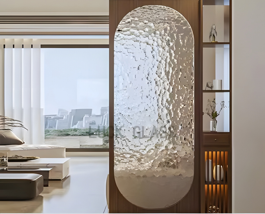 Patterned glass expertly balances privacy with natural light. Its unique texture effectively obscures the outside view, safeguarding interior privacy, while softly diffusing sunlight to transform outdoor scenery into an elegant play of hazy light and shadow, infusing the space with a soft beauty.