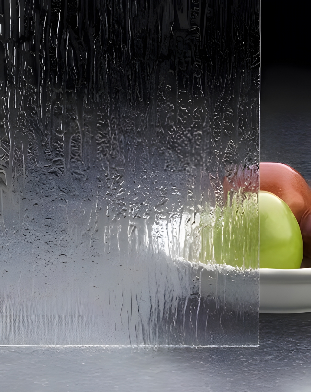 Mimics the natural traces of raindrops flowing on glass, presenting soft vertical or diagonal streaks.